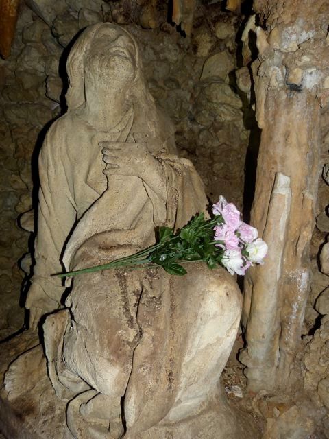 First we go to Limoux where we always visit the church of St Martin, the ND de Marceille and further east the abbey of Polycarpe. These places are well known. Then to the abbey of St Hilaire, also well known and on to Carcassonne, which is very well known. From here to Caunes Minervois with its ancient abbey. It is the area where the beautiful red marble is mined. Very special is the church of ND du Cross. One of my favourites. Witt it’s powerful Black Madonna and its sacred well. Also well known to my faithful readers. On to the dolmen de Fades, over 5.000 years old. On a very special hill, surrounded by very special trees, what a beauty! Further still, to the city of Minerve. With its huge bridge, its dove in the rocks and its underground river. Again well known to my customers. So something new then, the famous, powerful abbey and incredible rich abbey of Fontfroide, near Narbonne. See the beautiful church, the Pieta, the statue of Mary Magdalene and its magnificent rose gardens.