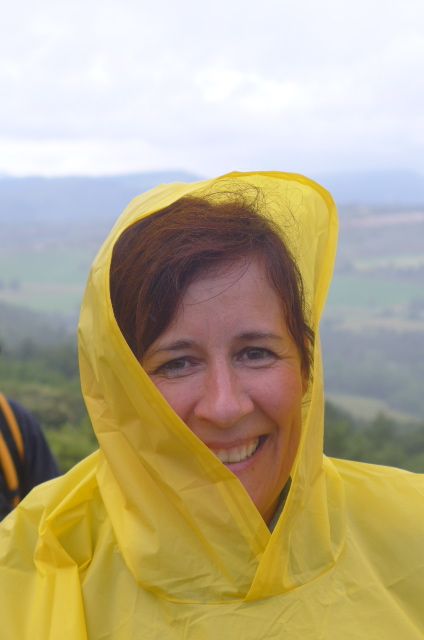 Wednesday June 4: Walking from Les Labadous to La Pique. The centre of Sacred Geometry in the area. A lovely small path. Visiting the special circle a little to the west of the ridge. A walk of 1,5 hours to the Pique and the same going back. That day it was raining. Gave me some colourful pictures of raincoats! At the end of the afternoon the group had some free hours. Some went to the shop, La Renaissance, of Joke in Quillan, others to Alet-les-Bains and some to Rennes-le-Chateau. See {PIC’s 49– 56}.