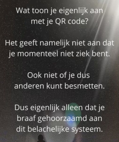 Ook is de vaccinatiegraad voor onze bewindslieden een belangrijke graadmeter voor het succes van hun maatregelen. Maar het belangrijkste argument zal wel zijn dat men de niet-gevaccineerde mensen in de gaten wil houden, hen wil registreren. Want dat zijn de huidige en toekomstige kritische volgers van het overheidsbeleid. Men wil weten wie het zijn en ook, middels hun mobieltje, waar ze zich bevinden, om dan, als dat nodig mocht zijn, hen met gerichte 5G straling, of anderszins, onschadelijk te maken.