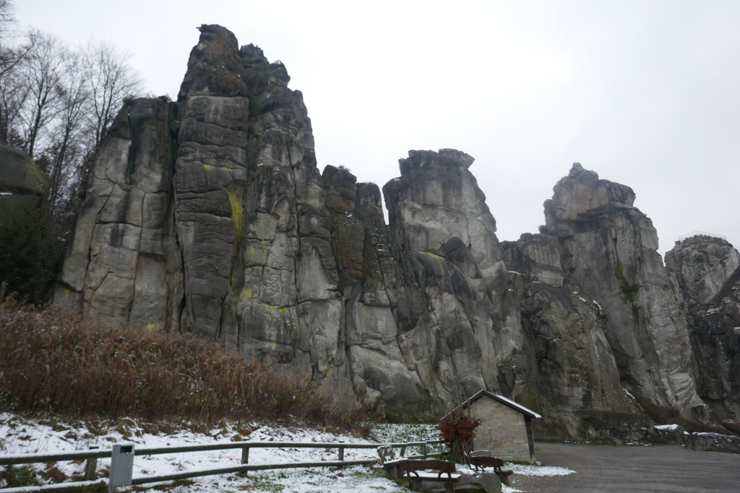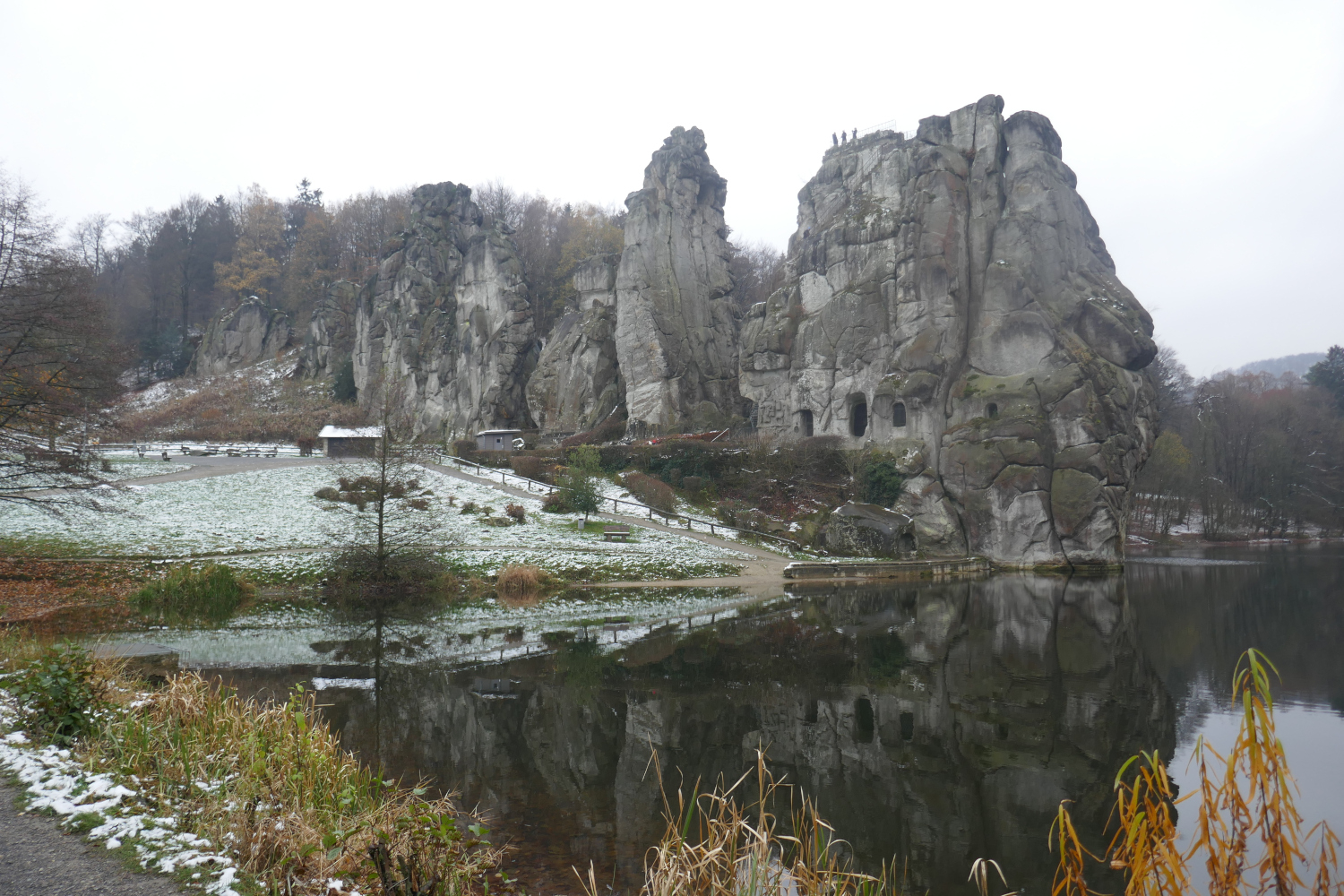 November 2018, naar de beroemde Externsteine in het Teutoburgerwoud in Duitsland. Een machtige, 40 meter hoge zandsteenformatie die zo’n 70 miljoen jaar geleden uit de woelige aarde omhoog gestoten is.