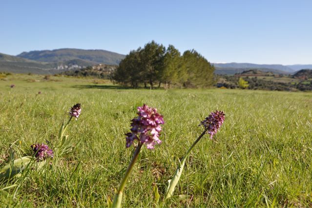 The last trip was to the Pech Cardou. The ‘female’ mountain. We first passed Rennes-les-Bains {PIC 41} and then parked the car at Montferrand. We might have gone up by Four Wheel Drive to the pick nick place near the top, but the weather was good so we walked. Here is the pick nick place, a special place. A place where 5 roads cross {PIC 42}. Here a picture of me taken at that famous place {PIC 43}. Close to the top of the mountain you can find the most incredible flowers. And the view is magnificent. Here a view from one sacred mountain, the Pech Cardou, to the other sacred mountain, the Pech Bugarach {PIC 44}. Finally, on top of the mountain, lies this enigmatic stone circle {PIC 45}. On the way back we went to the Roches Tremblantes in Rennes-les-Bains. The light was beautifully striking the dented rocks {PIC 46}. And again we had this strange feeling on the plateau. With its huge, straight trees. A feeling as if time stood still {PIC 47}.