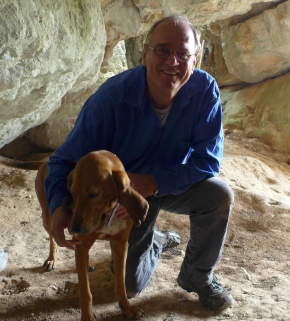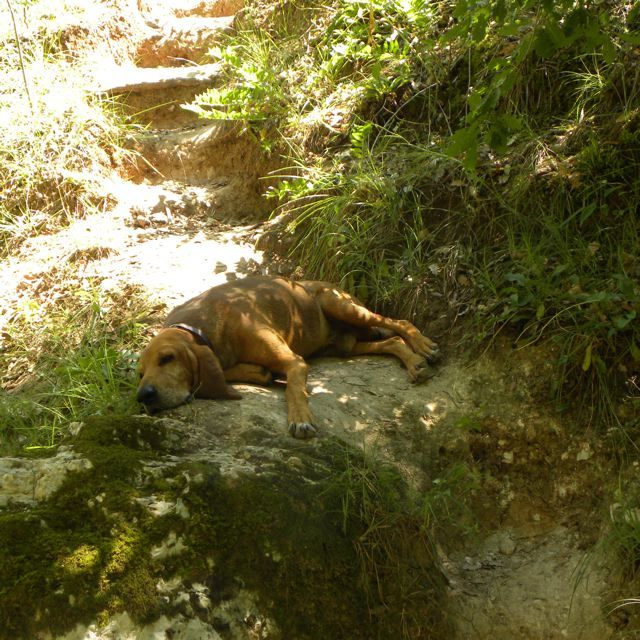 It is funny but the last two weeks our dog Ruah likes to accompany us to the cave, while on the way checking out all the interesting places and smells. Then, in the cave, he either drops down, exhausted {PIC 12}, or participates in the ceremony {PIC 13}. He loves to be with us, to be with company {PIC 14}. In the cave I discovered another strange painting. Man made or in natural colours, I don’t know. Does anyone know what this picture means or wants to tell us? {PIC 15}.