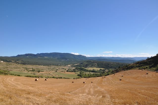 It has been dry in the Aude, very dry. All the sunflowers have their heads down. Only in this protected field, just west of Limoux, they were able to slightly lift their heads {PIC 56}.