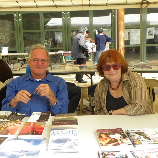 On August 10th we had the traditional book market in Rennes-le-Chateau. Where writers and publishers show their books, look for new, interesting material and exchange information. And where some people were actually buying books. Val Wineyard and I were about the only foreigners participating in this event. And although we both have written several, in my opinion, very interesting books, about Mary Magdalene, about the history of the area, about the Cathars and about Rennes-le-Chateau, we were mostly ignored {PIC 40}. Even though I had several books in English and my “Jamie on his cloud” book was translated in French, “Jamie sur son nuage”. It had just been printed and was there, on the table, but nobody seemed to be interested. So sad.
