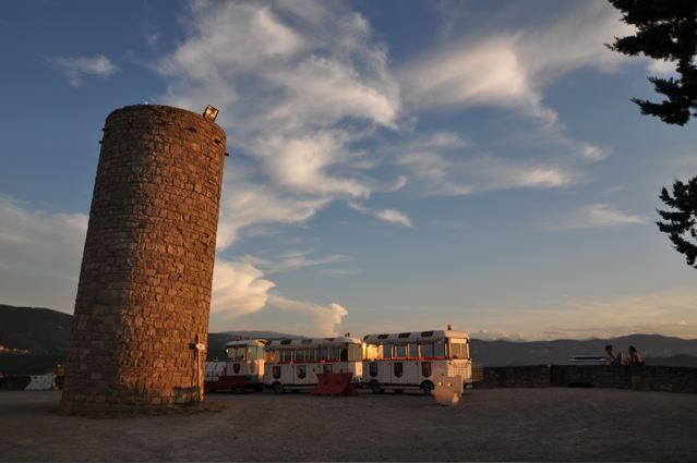 The most wonderful cloud formations and light effects can be witnessed from the top of the hill, the Hill of Isis. Look at the Tour Magdala in the clouds {PIC 44} and the water tower with the little train that is taking the people from the parking places to the ‘center’ of Rennes-le-Chateau {PIC 45}. Or the sun setting behind the Tour Magdala. Pure magic {PIC 46}.