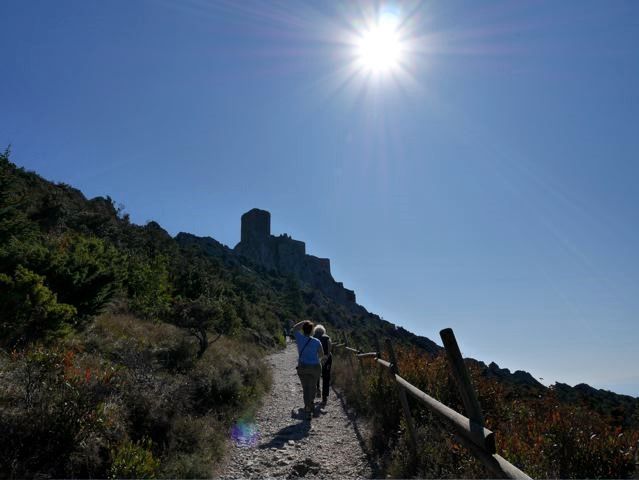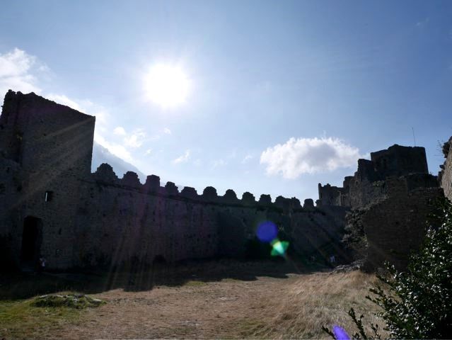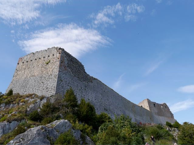 My American friends were crazy about the Cathar castles. They had read all about these castles at home and wanted to visit as many as possible. Even when I explained that they were not Cathar castles at all, but castles built by local warlords, that did not dim their enthusiasm for a minute. Only the Montsegur was especially fortified for the Cathars. So here we went, three castles in a day. First Peyrepertuse, then Queribus and finally Puilaurens. And the next day Montsegur. Very good form y condition!