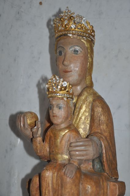 With my good friend Rian I travelled east. We wanted to have a look at a special place, the ND des Anges, high up on a hill, 700 metres high, in the middle of the Massif des Maures, 30 kilometres west of St-Tropez. Look at the lovely chapel {PIC 02}, the curious Black Madonna {PIC 03} and this strange lady {PIC 04}. And know dear friends that there I burned a candle for you! {PIC 05}.