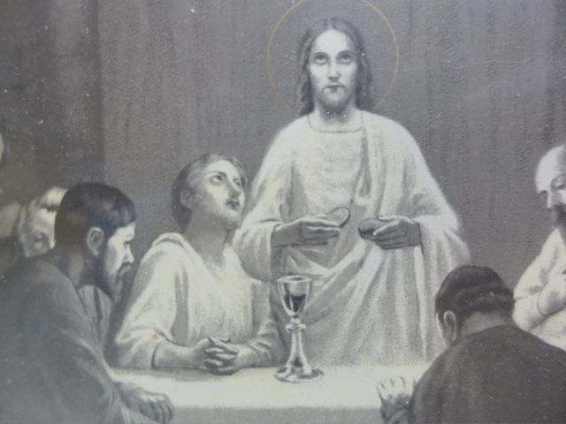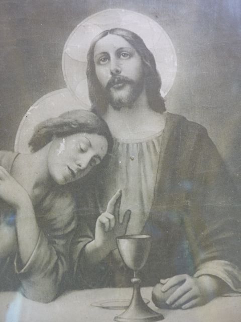 Where you can find the most wonderful things for almost nothing. Look what I found in the vide grenier in Rennes-le-Chateau {PIC 70}. Does anyone know what type of cross this is? The vide grenier in Esperaza is something special. Situated along the river Aude, large and gentle {PIC 71}. And look what I found. Again a lovely portrait of Jesus and Mary Magdalene, clearly in love {PIC 72}. And isn’t this person next to Jesus at the Last Supper, clearly, a lady? A lady in love {PIC 73}.