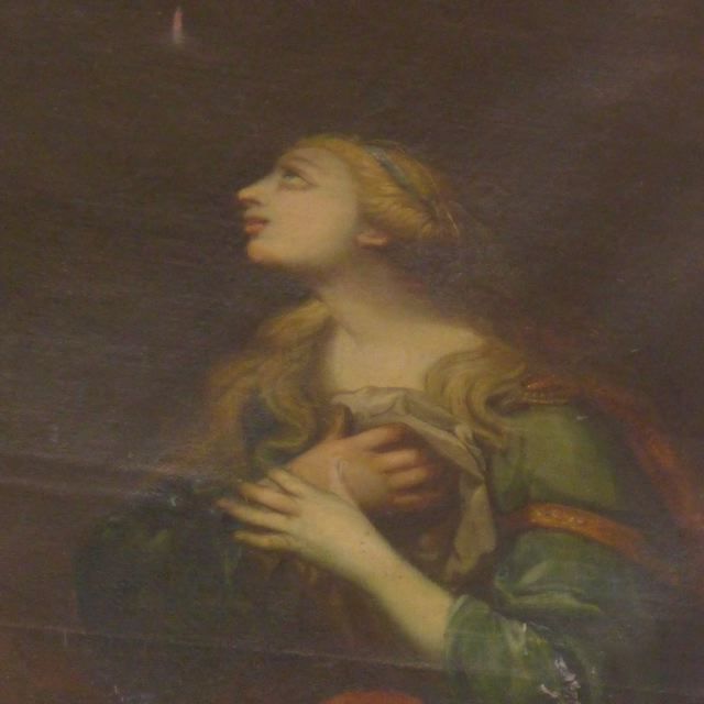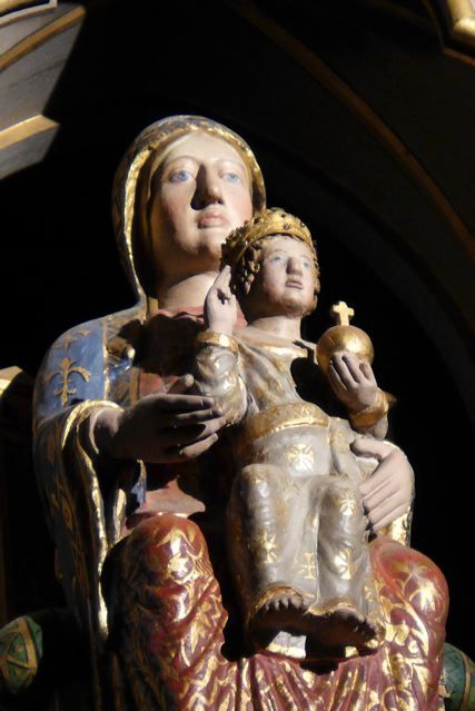 I am always looking for Mary Magdalene. For her statues, for her paintings, for her energy, for her spirit. This month I was lucky to meet her again. Look at this very, very ancient statue of her in the treasury of the cathedral of Albi {PIC 23}. And this painting of her in the cathedral of Saint-Nazaire in Beziers {PIC 24}.