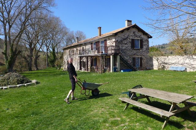And again it was proven that the weather in Rennes-le-Chateau could be wonderful. Even in February and March. Clear skies, beautiful sunsets, some rain, mostly at nighttime. Good to work in the garden, clearing brambles. Turning over the fertile soil. Our dog Ruah is welcoming the spring. Our home emerald lizard is soaking up the sunrays. The river is happy and forceful. And Marijke is helping us for two weeks in exchange for free lodging. See {PIC’s 03 - 11}