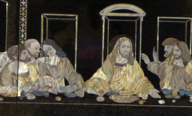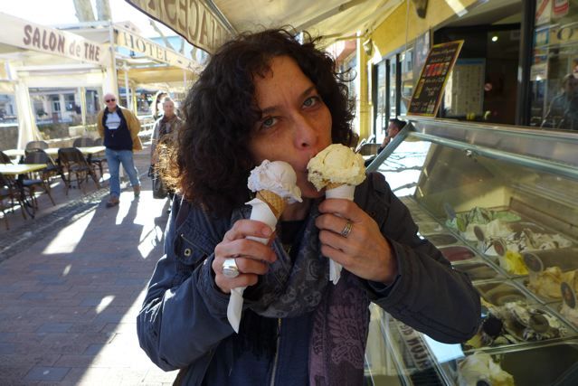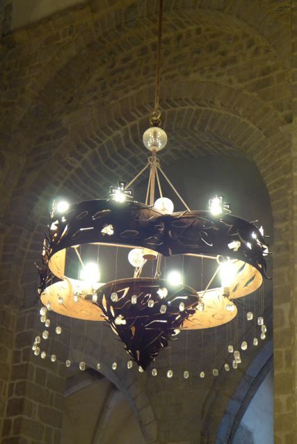 First going to the Gorges de Galamus, where a very strong wind was blowing. Then to Elne, just south of Perpignan. The ancient capital of the Roussillon, with its beautiful cathedral and abbey, its strange faces at the Last Supper, where again the person sitting next to Jesus is clearly a woman. See the curious tableau where Jesus is laid down, with all the faces hacked away. And the strict Black Madonna and the beautiful lamp. Then on to Collioure, always an adventure. And almost always good weather. The beautiful church at the entrance to the harbour, with this partly hidden wooden panel of Mary Magdalene in the cave. And of course the restaurants, the shops and the ice cream parlours! See {PIC’s 29 – 38}.