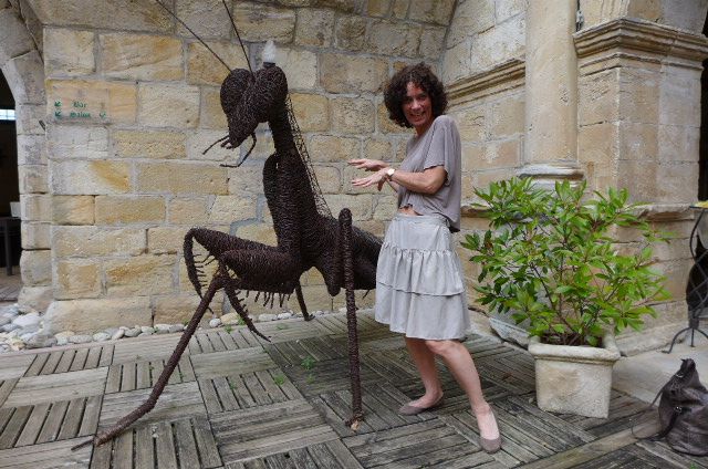 - Val Wineyard paid another visit to Alet-les-Bains. She is working on a new book. Incredible the amount of books she is putting out! Here she is at the river Aude. And of course we paid a visit to the Angels Gallery, guarded by this Lion of Judah. We were allowed a look at one of the models that that Lorrie was sculpting. What a beautiful, magnificent radiance. Hat off. And good luck at the gallery in New York, dear friends!