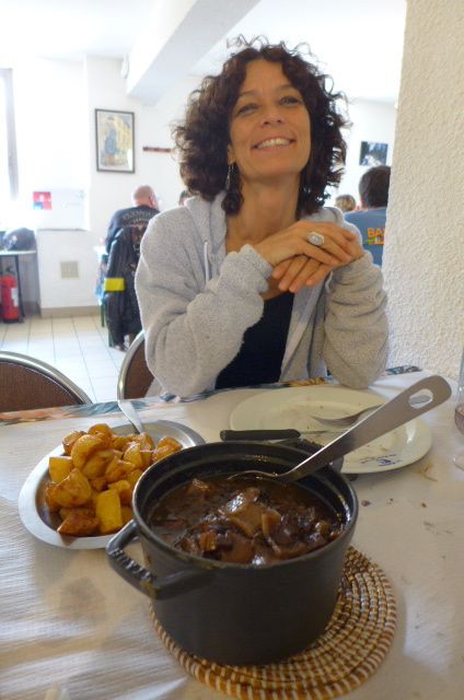 - Restaurants. I was happy to be able to take Door to two of my favourite restaurants. The first being La Pierre Lys in Quillan, a bit old fashioned ,but that is what I like. And the second was Le Relais du Pays du Sault in Espezel. Where they serve a five-course menu on one plate, with one fork, one knife, one glass and three bottles on the table. Grenache, red wine and water. Bottles that are being refilled when empty. What a treat, for both of us!