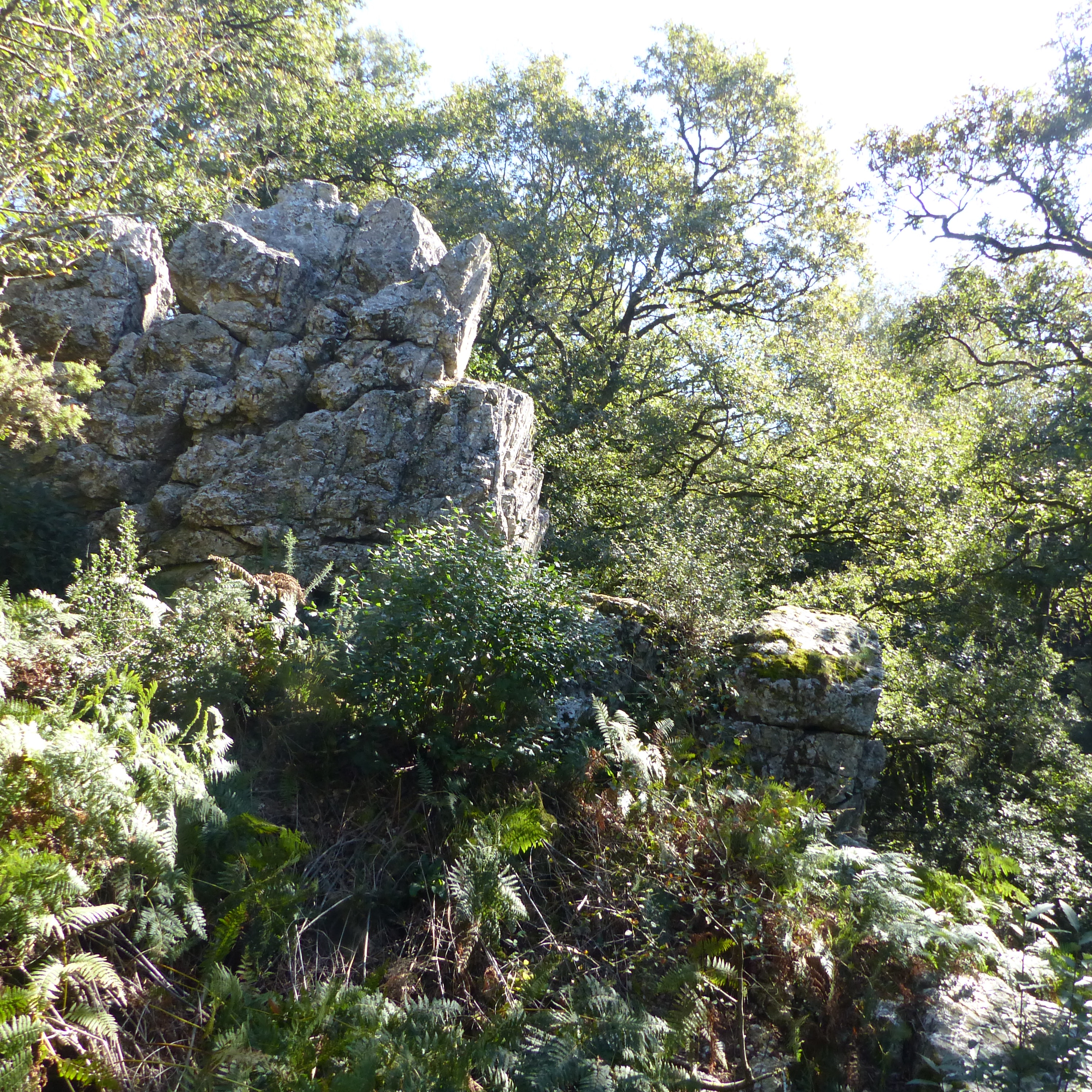 - Les Roches aux Fees. Het is een eindje weg maar ik heb er bijzondere herinneringen aan. Het is de grootste overdekte rotsformatie in Bretagne. Wat een magisch geheel. En weer omgeven door tamme kastanje bomen. De grond ligt vol met kastanjes. Hier een foto samen met Spirit. Daar eten we heerlijk in een wegrestaurant dat gevonden kon worden dankzij mijn TOMTOM of mijn Mobieltje. Dat weet ik niet meer.
