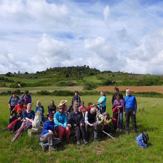 Saturday June 7: First going to the chateau of Puivert. The castle of the troubadours. We were lucky. There was a festival going on. With ancient cooking, ancient weapons and a wonderful exposition of ancient musical instruments. We learned that there are people in France who still make those instruments or restore them. Then going back to the Labyrinth of Nebias. People really liked this place. First having lunch at the Mill. Then walking further to the Labyrinth Vert and even further to the great stones. What a magic sight. Then back to Les Labadous, a 30-minute drive. See {PIC’s 72– 75}.
