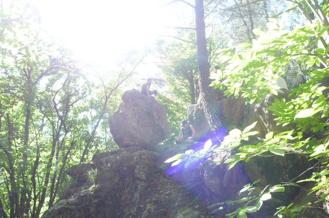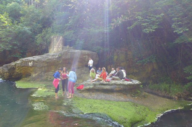 Sunday June 1: Couiza, Camp Grand with the capitelles. We could walk the Sentier des Capitelles for a while, hiking about 30 minutes. Then to Peyrolles, the land with the head of the snake a field and his tail a river. A little further is the land of the Red Earth. With beautiful red and ochre earth. A good place for a pick-nick and a siesta. A quick visit to the beautiful bridge in Serres and then to Rennes-les-Bains, to the Fontaine des Amours. There we stay for a while, while some of our friends went swimming. In the icy cold water! About a 30 minute drive from Les Labadous. Then park the cars in the village and walk up to the Fauteuil du Diable, also called the seat of Isis next to the Fountain “Le Cercle.” From there further up the hill to the Roches Tremblantes, the Trembling Rocks, an old Druid place. With, they say, a doorway to other dimensions. A good 30 minutes hike. Then back to Les Labadous. See {PIC’s 12 – 20}.