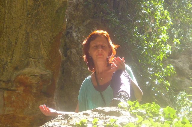 Friday May 30: Walking from Les Labadous to the Aven Cave. And then to the Cave of Mary Magdalene, the Birthing Cave and Jesus’ Cave, all three are close together. Then back across the River of Colours through the valley to Les Labadous. Hiking time about 3 – 3,5 hours. In the evening we walk up to the plateau south of Rennes-le-Chateau to the place where once a Temple of Lemuria stood. A 20-minute hike. See {PIC’s 03 – 06}.