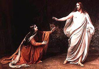 When Mary found him, he had recovered consciousness after a horrific ordeal of torture. He was bruised all over, wounded in the hands, feet and side, and traumatised. No wonder he said “Don’t touch me” or “Don’t embrace me”.