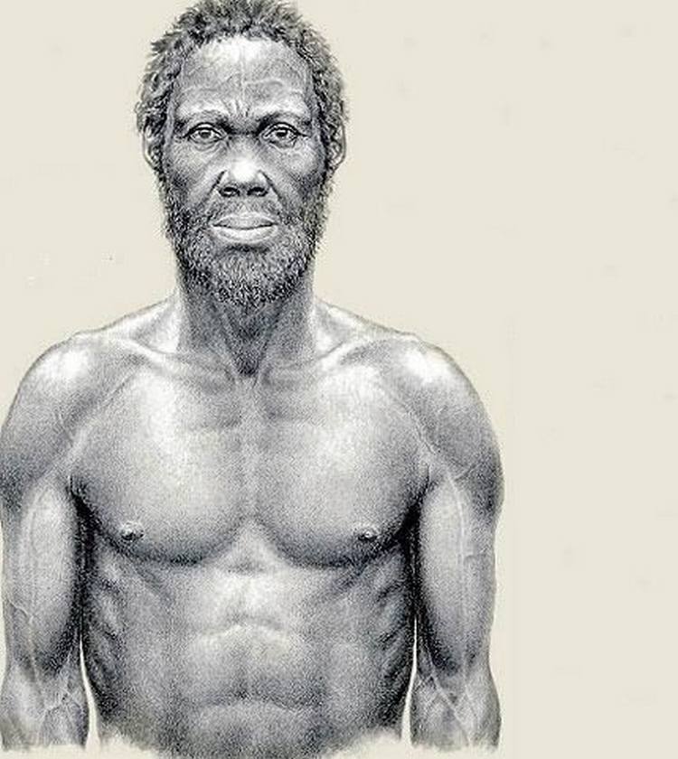 Maar dat ging niet snel genoeg, want telkens moesten er bevruchte eitjes in de baarmoeders van de Nibiru vrouwen geplaatst worden, en dat waren er niet zo veel. Er was een sneller proces nodig. De mensen zouden zichzelf moeten kunnen voortplanten. Dat lukte na veel experimenteren, (de details staan in mijn boek) en zo werd de homo sapiens sapiens geschapen. Onze voorouder, zoals later ook wetenschappelijk is vastgesteld. Die moet er zo ongeveer als deze mens hebben uitgezien. Enlil had het niet zo op de mensen begrepen en verjoeg hen uit het aards paradijs. Hij strafte hen bovendien door te verklaren: ‘Met smart zult gij kinderen baren’.